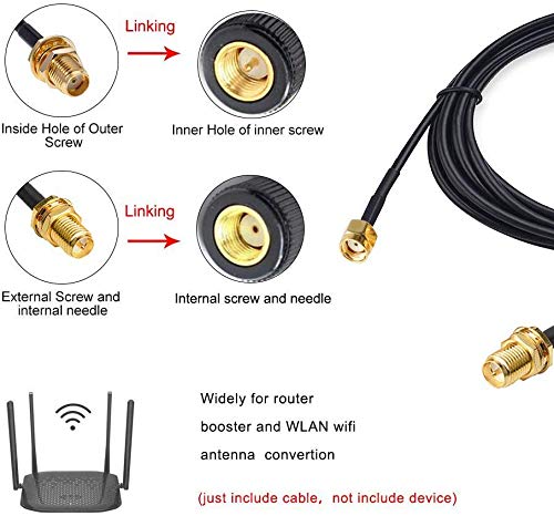 - ✨Cavo di estensione RG174 per connettore antenna Wi-Fi. Tipo: da presa maschio RP-SMA (buco al centro della filettatura interna) a presa femmina (corpo di contatto al centro della filettatura esterna).