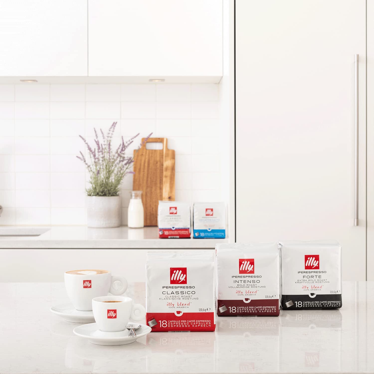 • Caffè in capsule Iperespresso Tostato INTENSO, illy blend 100% Arabica. Ogni confezione contiene 18 capsule