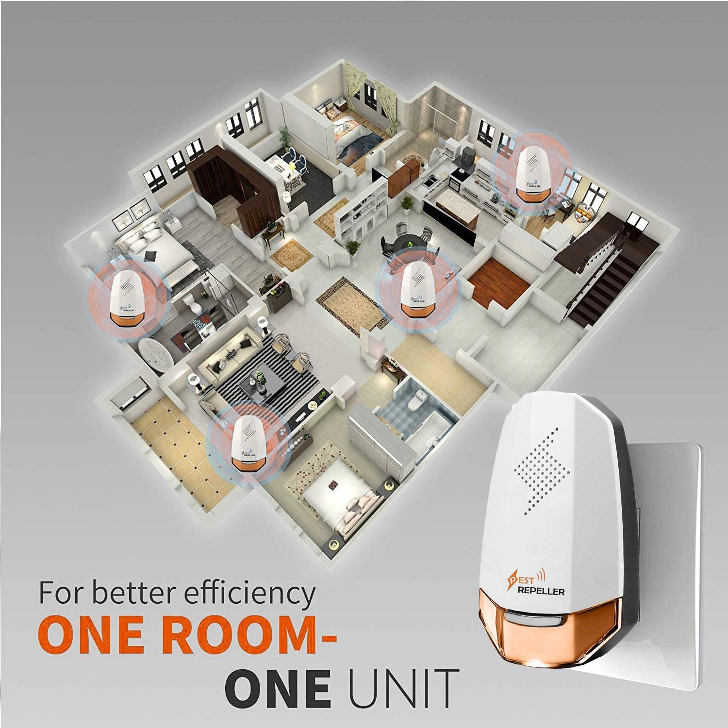 AMPIA AREA DI COPERTURA EFFICACE: Il repellente per parassiti ad ultrasuoni è efficace per un'area fino a 120 metri quadrati Il controllo dei parassiti è ampiamente utilizzato in case, magazzini, uffici, giardini, hotel, scantinati.