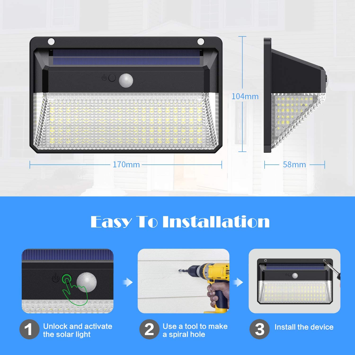 🌞VOOE 228LED Luce Solare Led Esterno 【2200mAh】 Lampade Solari a Led da Esterno Luci Esterno Energia Solare Luci Solari Esterno