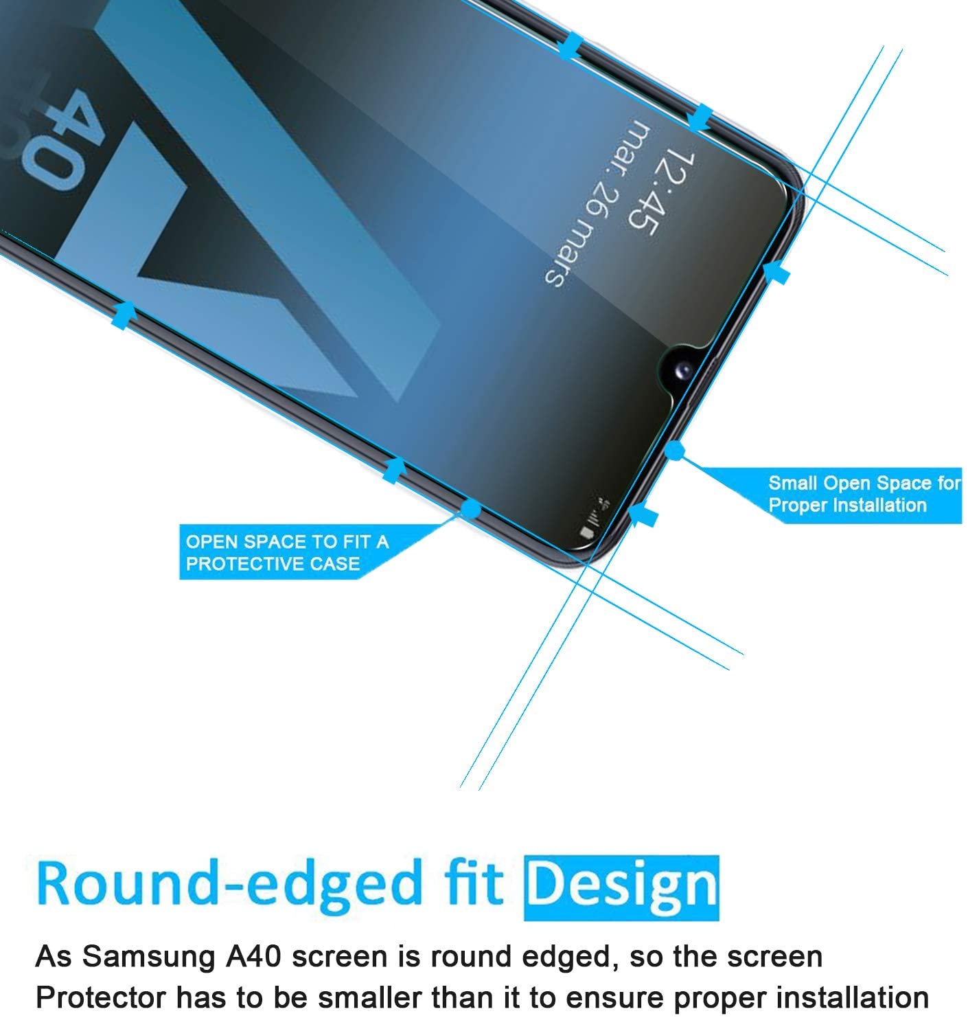 NEW'C Pellicola protettiva in vetro temperato per Samsung Galaxy A40 (SM-A405F), [2 pezzi] Privo di graffi, impronte e olio, durezza 9H, 0,33 mm, ultra trasparente, compatibile con Samsung Galaxy A40