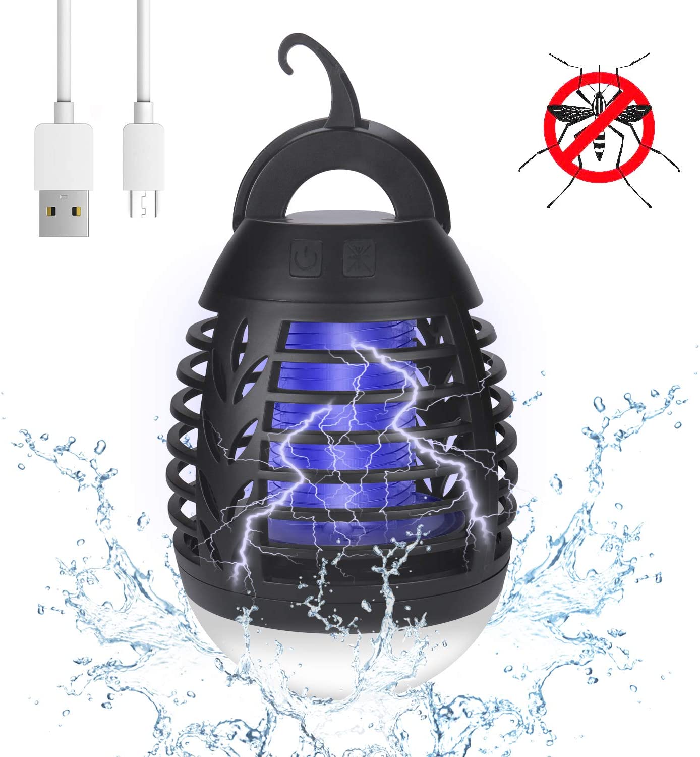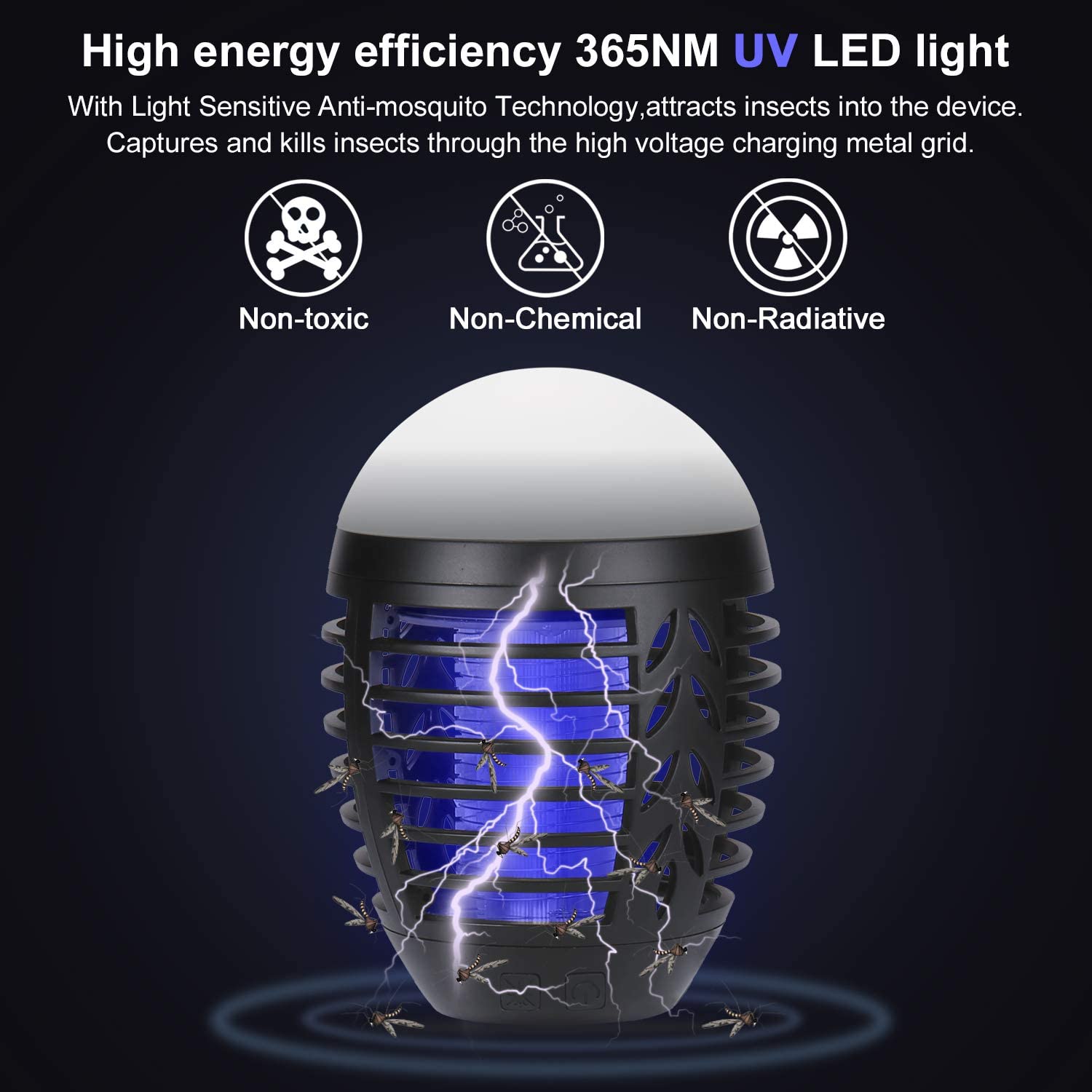 yipin Lampada Antizanzara Elettrica per Esterno&Interno,2-in-1 Lampada Anti-zanzara & Lanterna da Campeggio Lampada da Tenda IP67 Antipioggia Bug Zapper LED Carica della Lampada Tramite USB 2200mAh