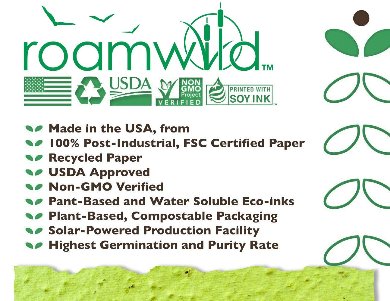 - ECO-FRIENDLY - Roamwild ha perfezionato il processo secolare di incorporare i semi in carta per realizzare biglietti di auguri, biglietti di ringraziamento, carta artigianale e oggetti speciali che diventeranno effettivamente fiori, erbe e verdure!