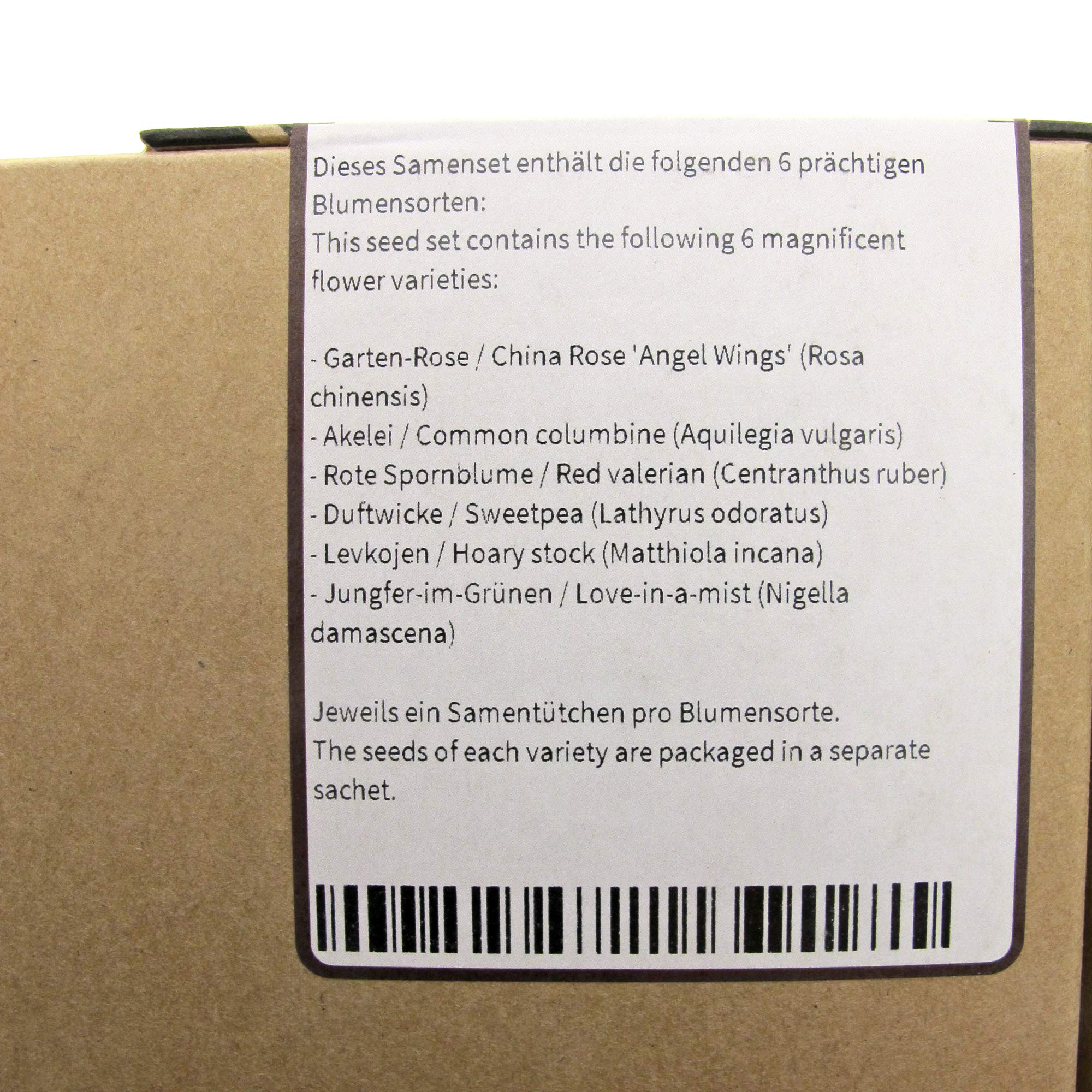 Le bustine di semi e le istruzioni dettagliate per la semina in tedesco e in inglese sono confezionate in una bella scatola regalo.