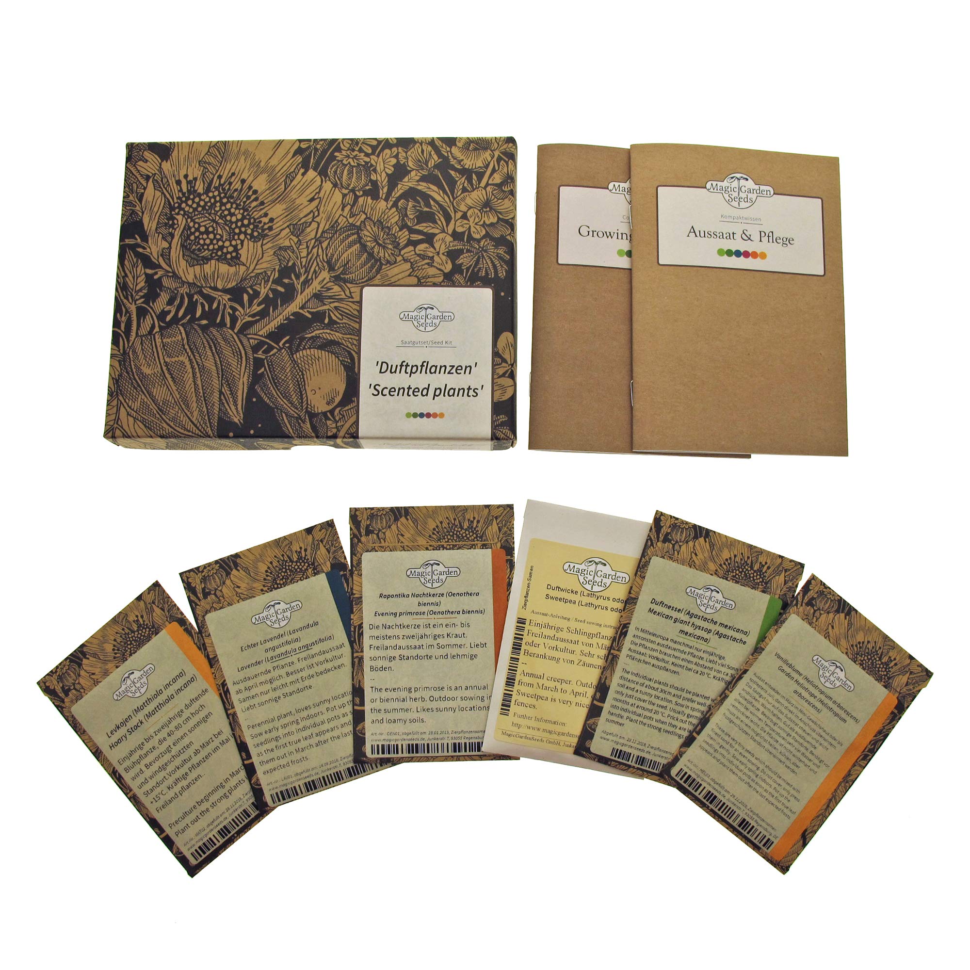 Le bustine di semi e le istruzioni dettagliate per la semina in tedesco e in inglese sono confezionati in una bella scatola regalo - un regalo fantastico e duraturo per il giardino. Ogni amante delle piante ne sarà felice.