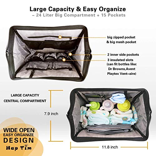 • tasche funzionali ; un sacco di tasche, include una tasca del tessuto, 3 tasche isolate bottiglia di latte, un portachiavi, una tasca con cerniera sul lato posteriore perfetto per mantenere i vostri preziosi oggetti ecc...