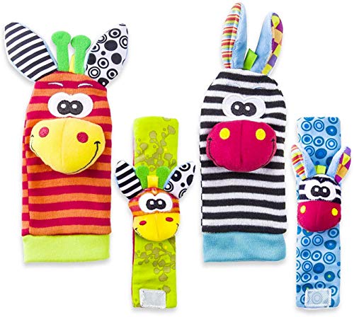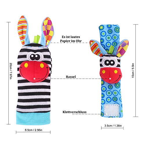 Baby Rattle Neonato Sonagli Calzini da Polso a Sonaglio per Bambini, Simpatici Animaletti Developmental Soft Toys Bambole per Neonati Neonato, 4 PACK