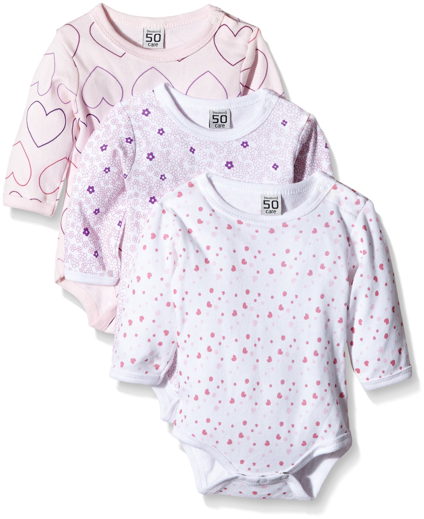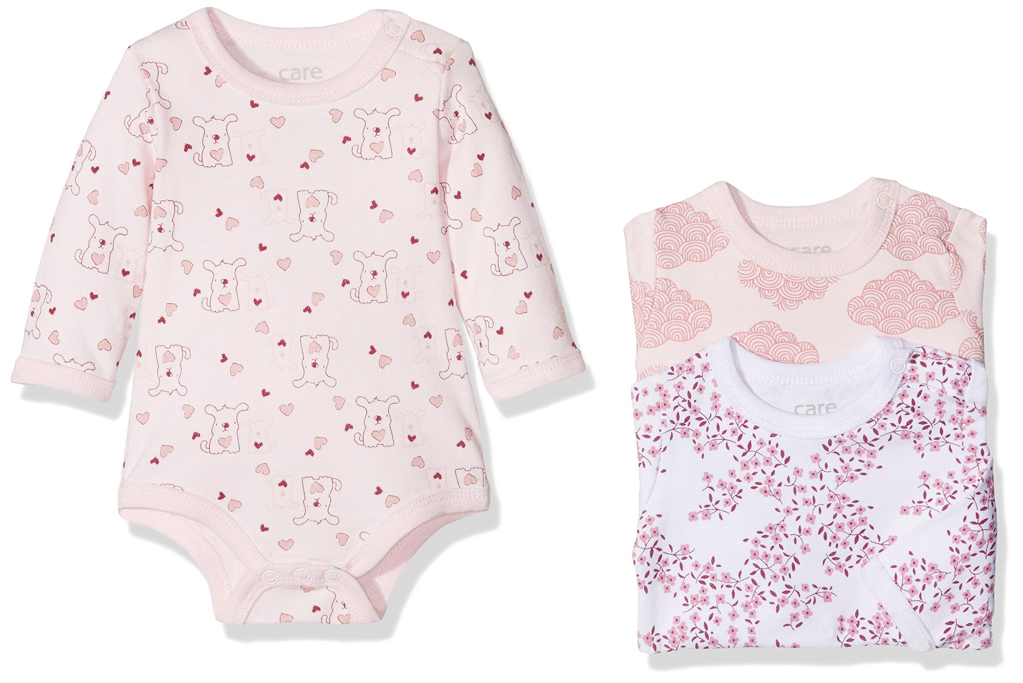 Care - Body Bimba, pacco da 3, Rosa (Light red 500), 9 mesi / 74 cm