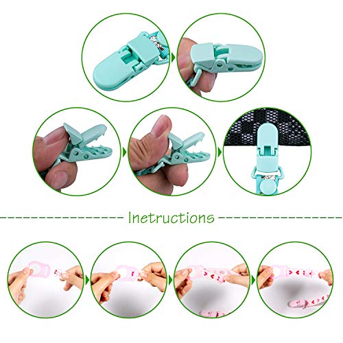 • Ampiamente Usato: Pacifier Clips può essere utilizzato con manichini, succhietti, giocattoli per dentizione; potrebbe anche essere facilmente attaccato a vestiti per bambini, coperte per bambini, bavaglini bavaresi, ecc.