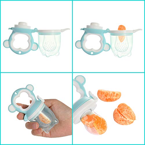 Faburo 2pcs Ciuccio per Alimenti/Frutta per Bambini + 9pcs Ciuccio in Silicone(3 * 3), Ciuccio per Frutta Neonati Succhietto Dentizione Giocattolo per la Dentizione Della Frutta(Blu + Marrone)