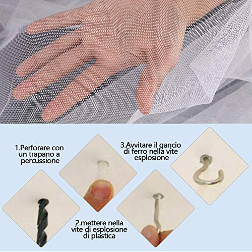 - Installazione senza problemi: sono necessari solo pochi secondi per appendere la nostra rete, utilizzando il set di ganci (o adesivi da parete di alta qualità). La rete di protezione dagli insetti può essere piegata per essere trasportata facilmente nel vostro bagaglio, salvando spazio. - Vi offriamo un set completo, composto da una zanzariera e un sistema di sospensione (con funi e ganci alla parete)