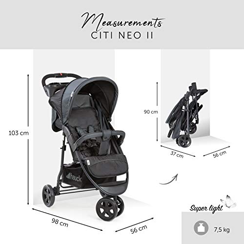Hauck Citi Neo II Passeggino a 3 Ruote Leggero, 7.5 kg da 0 Mesi Caviar/Stone