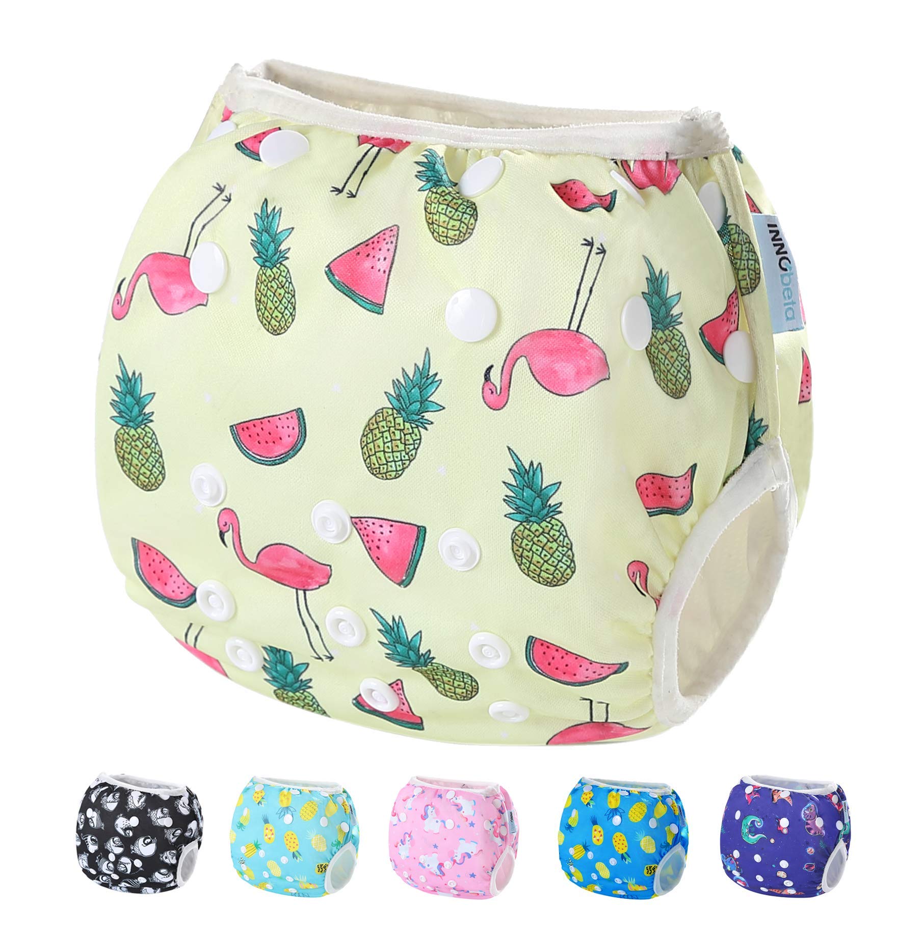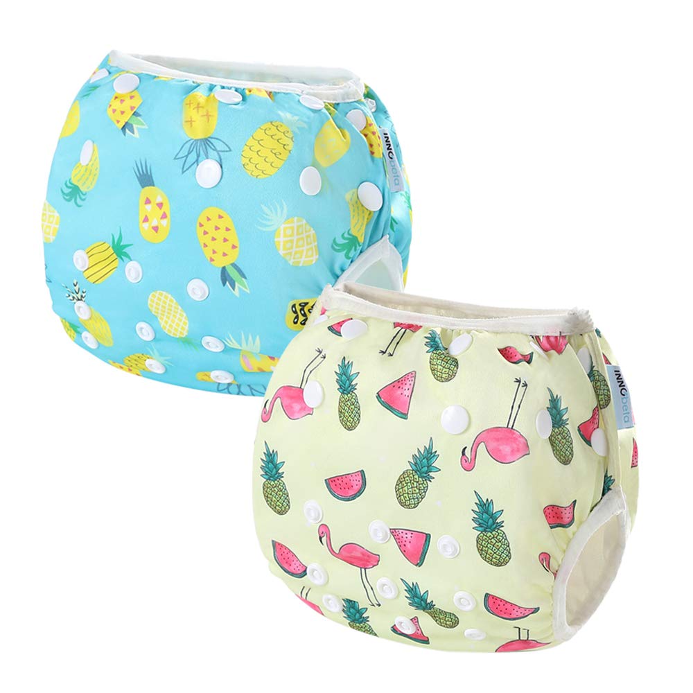 InnoBeta 1pcs Pannolini da Nuoto Riutilizzabile, Costume Pannolino Lavabili, Impermeabile Pannolino Piscina (0-1 anni), per Neonati e Bambini, Size S, ANANAS BLU