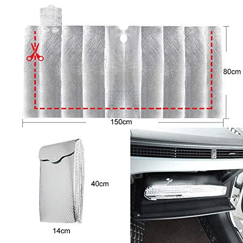 - 【Mantenere Temperatura Confortevole】Il materiale riflettente il 99% devia la luce solare e il calore - riduce l'umidità interna dell'automobile, le prestazioni di isolamento sono buone, riducono efficacemente la temperatura all'interno dell'auto, il consumo di carburante consente di risparmiare l'aria condizionata, aiuta a mantenere fresco l'abitacolo durante i periodi caldi e soleggiati