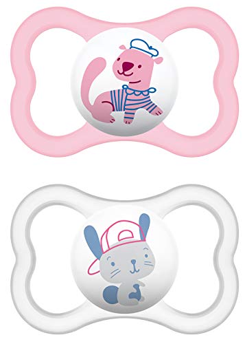 MAM 217122 Ciuccio "Air" In Lattice Naturale Per Bambine Dai 16 Mesi In Su, 2 Pezzi, Colori Assortiti