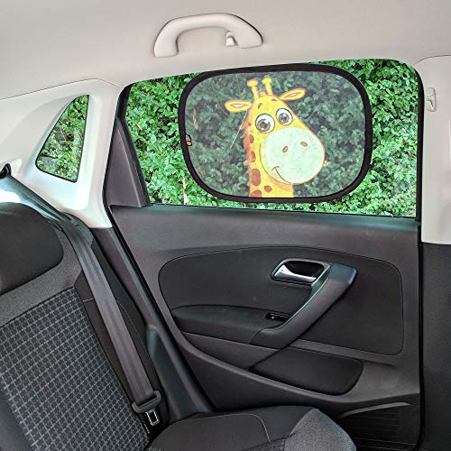 Colore:Nero e Giallo Parasole di qualità per finestrini dell'auto, per neonati, venduti da Baby Uma. Questi giocosi parasole con giraffa sono disponibili in una confezione da 2 con pratica custodia per i finestrini laterali posteriori. Agiscono come uno schermo o tendina per proteggere l'auto, senza compromettere la visibilità. Rendono anche i bambini più felici, perché staranno al caldo, comodi e rilassati. Divertente e d'intrattenimento per il vostro neonato o bambino, potrete stare tranquilli che i vostri bambini verranno protetti dai dannosi raggi UV, dai riflessi del sole e dal calore in modo da potersi concentrare sulla strada. Il parasole si apre di scatto ed è subito pronto all'uso in meno di 10 secondi. Sono facili da riposizionare e se avete bisogno di aggiustarli, basta staccarli dal finestrino e ripetere l'applicazione, se necessario, non necessitano di ventose che si perdono. Design leggero con filo a molla, si ripiegano per essere riposte facilmente e rapidamente in una comoda tasca. Per l'utilizzo in tutte le stagioni e progettate in una dimensione standard per adattarsi a quasi tutte le vetture, il design a maglia permette di vedere attraverso in modo da non bloccare la visuale. - - Specifiche tecniche: Dimensioni del prodotto: 41 cm x 31 cm. Peso dell'articolo: 100 g. Materiali (parasole): poliestere (60g/m2), supporto in PVC, filo in acciaio (70% + 30% di ferro). Materiale (custodia): Tessuto poliestere (210D). Contenuto della confezione: 2 parasole ad elettricità statica per auto (ventose non richieste). 1 borsa porta-oggetti.
