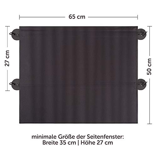 - Si adatta praticamente ovunque: paraluce adattabile al finestrino (larghezza: da 35 a 68 cm, altezza: da 27 a 50 cm), in questo modo si oscurano completamente quasi tutti i finestrini laterali, sia i finestrini piccoli che quelli grandi laterali.