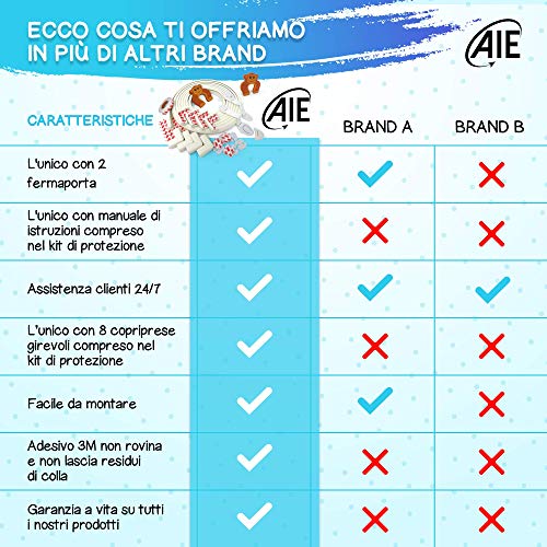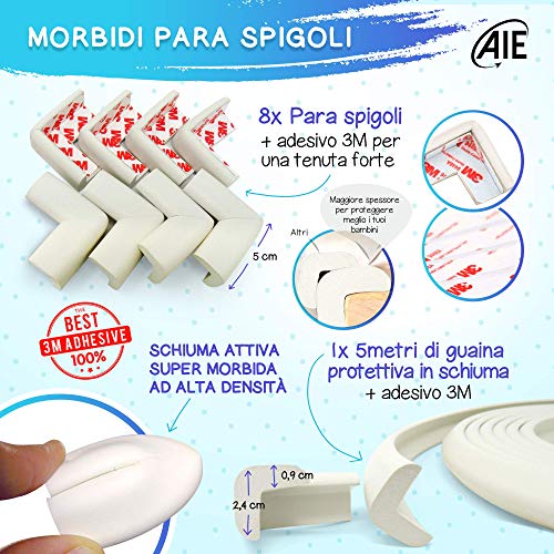 - ✔【IL PIU' COMPLETO】 AIE si impegna per creare i prodotti più completi sul mercato. Il nostro Kit è l'unico ad avere ALL'INTERNO DELLA CONFEZIONE ben 8 copriprese elettriche Antiscossa con sistema "LOCK" che chiude automaticamente l'entrata della presa quando estraete la spina, perfette per case italiane, in oltre la SCHIUMA ATTIVA in FORMULA REVISIONATA E MIGLIORATA può proteggere e respingere tutti i TRAUMI DA IMPATTO.