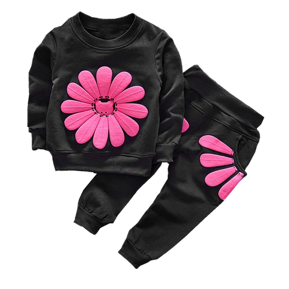 puseky Felpa a Maniche Lunghe Girocollo Neonate + Pantaloni Tuta Completi da Completo (9-12 Mesi, Rosa)