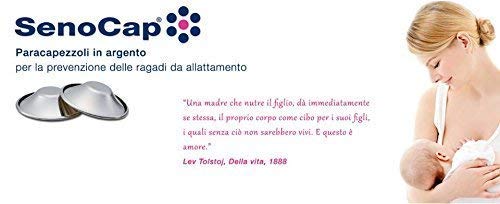 I paracapezzoli in argento 925 SenoCap sono indicati nei casi in cui sia necessario fornire una completa protezione del seno da agenti esterni in caso di ragadi, in momenti particolari come l'allattamento. Le coppette in argento 925 SenoCap sono sicure perchè non rilasciano alcun tipo di materiale (assenza di NICHEL), inoltre non alterano il gusto del latte materno rendendo il tutto più naturale per il bimbo e la mamma. La particolare forma dei paracapezzoli ne fornisce una completa aderenza al seno.Igieniche e pratiche da usare, le coppette paracapezzoli in argento 925 SenoCap si applicano tra capezzolo e reggiseno e dispongono di una particolare tecnica brevettata che permette una totale e confortevole aderenza al capezzolo, Dopo la poppata lasciare una goccia di latte nei paracapezzoli e farli aderire al capezzolo come una ventosa sotto il reggiseno; risciacquare il capezzolo prima di allattare.