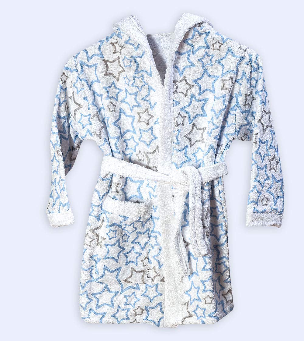 Ti TIN Accappatoio Per Bambino o Bambina con Cappuccio in Spugna | 100% Cotone Morbido e Assorbente con Un Design a Stelle Color Celeste, Taglia 1 Anno