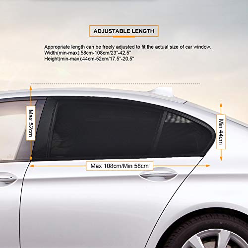- ▲ Incredibilmente Facile da Installare -- Finestrini parasole con la rete elastica e flessibile, realizzata in materiale resistente e di alta qualità con NUOVISSIMA TECNOLOGIA 2019 - Duel Stitch, si abbassa sullo sportello della macchina aperta. Lunghezza della finestra (min-max): 58 cm-108 cm / 23 '' - 42,5 '', altezza della finestra (min-max): 44 cm-52 cm / 17,5 '' - 20,5 ''