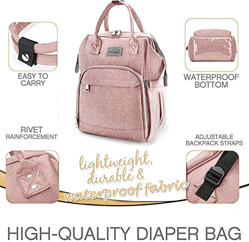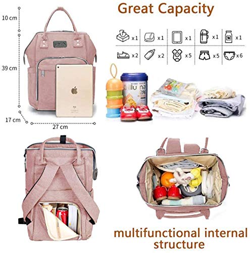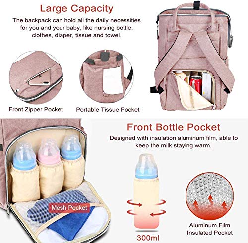 Viedouce Borsa per Pannolini Zaino Fasciatoio, Mamma,Impermeabile Rosa