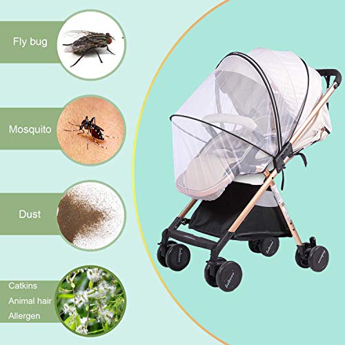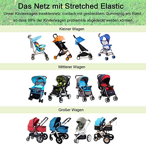 - * Antistrappo a maglia fine: zanzariera con un elastico molto veloce da usare e molto adattabile – Il tessuto a rete non lascia passare anche piccoli insetti, colore nero e bianco la rete si adatta a qualsiasi passeggino o passeggino.