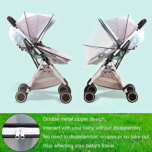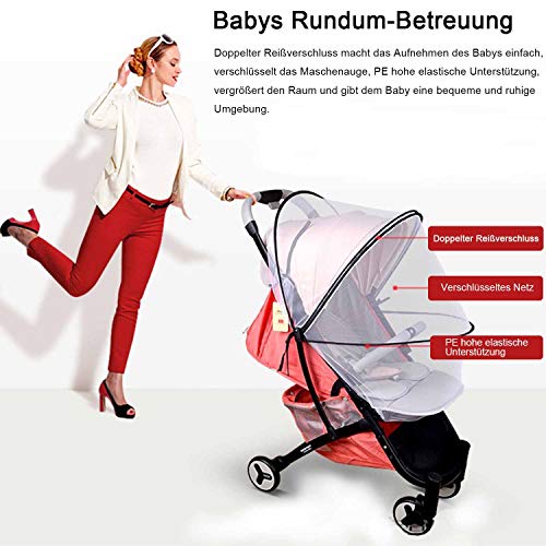 Zanzariera universale per passeggino, con elastico e chiusura lampo, extra grande, a maglia fine, resistente agli strappi e lavabile, protezione ideale da vespe e zanzare