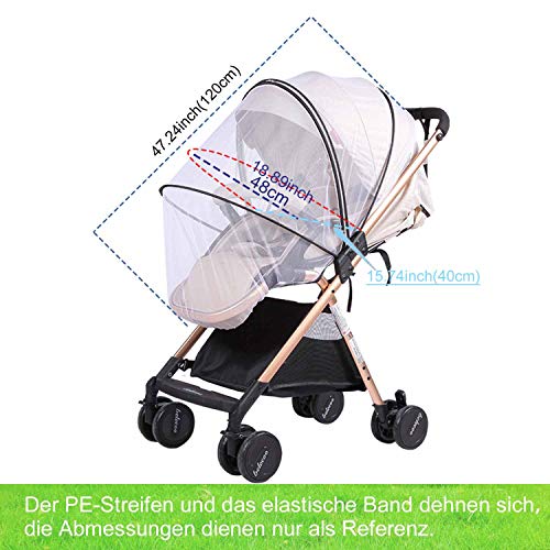 - * Zanzariera universale: adatto per passeggini, carrozzine combinate (con tetto), passeggini, passeggini, culle, culle, lettini, lettini e lettini da viaggio fino a 120 x 60 cm.