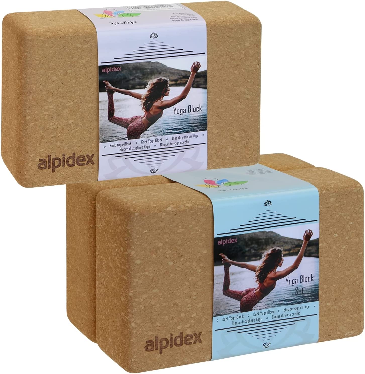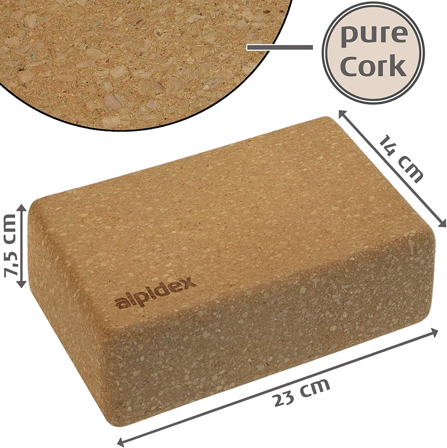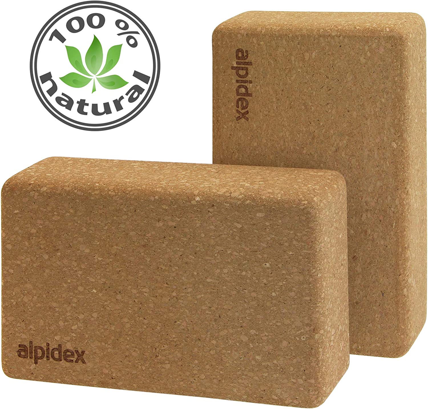 ALPIDEX Blocco di Sughero 1 Pezzo o Set di 2 Blocco Yoga Ecologico e sostenibile Sughero dal Portogallo