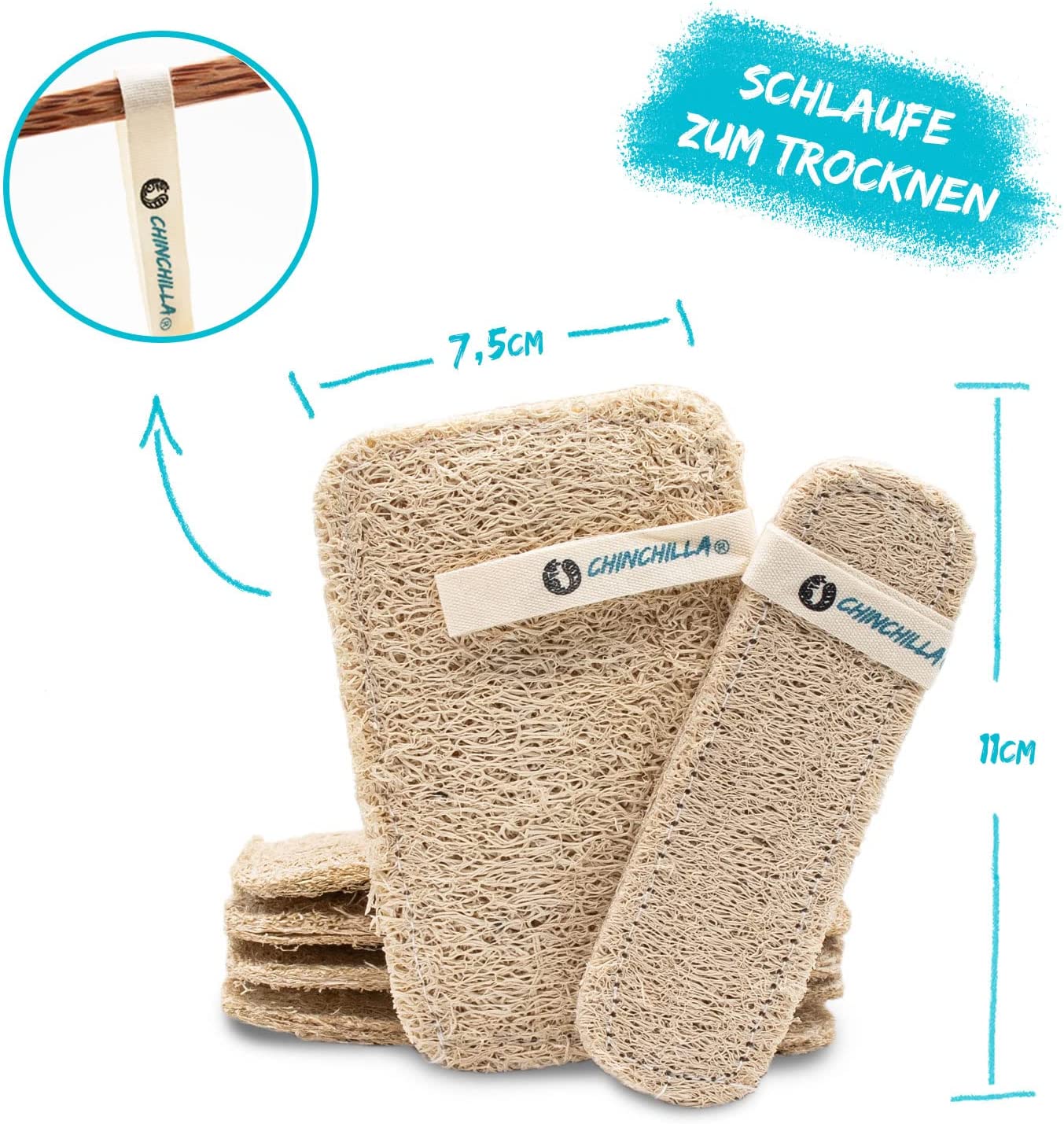 Chinchilla Luffa, spugna da cucina, 7 spugne da cucina sostenibili, lavabili e riutilizzabili, spugne per lavaggio sostenibili e vegane, Spugna naturale in Luffa Gurke (CC-1012-2)