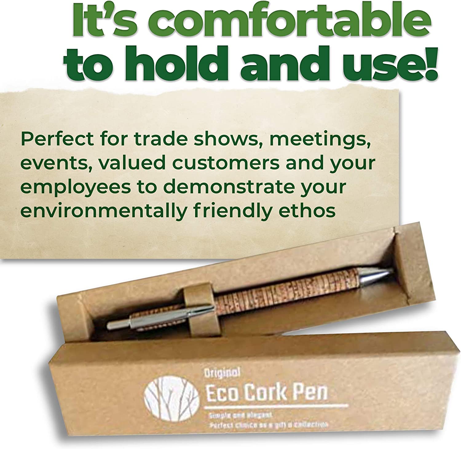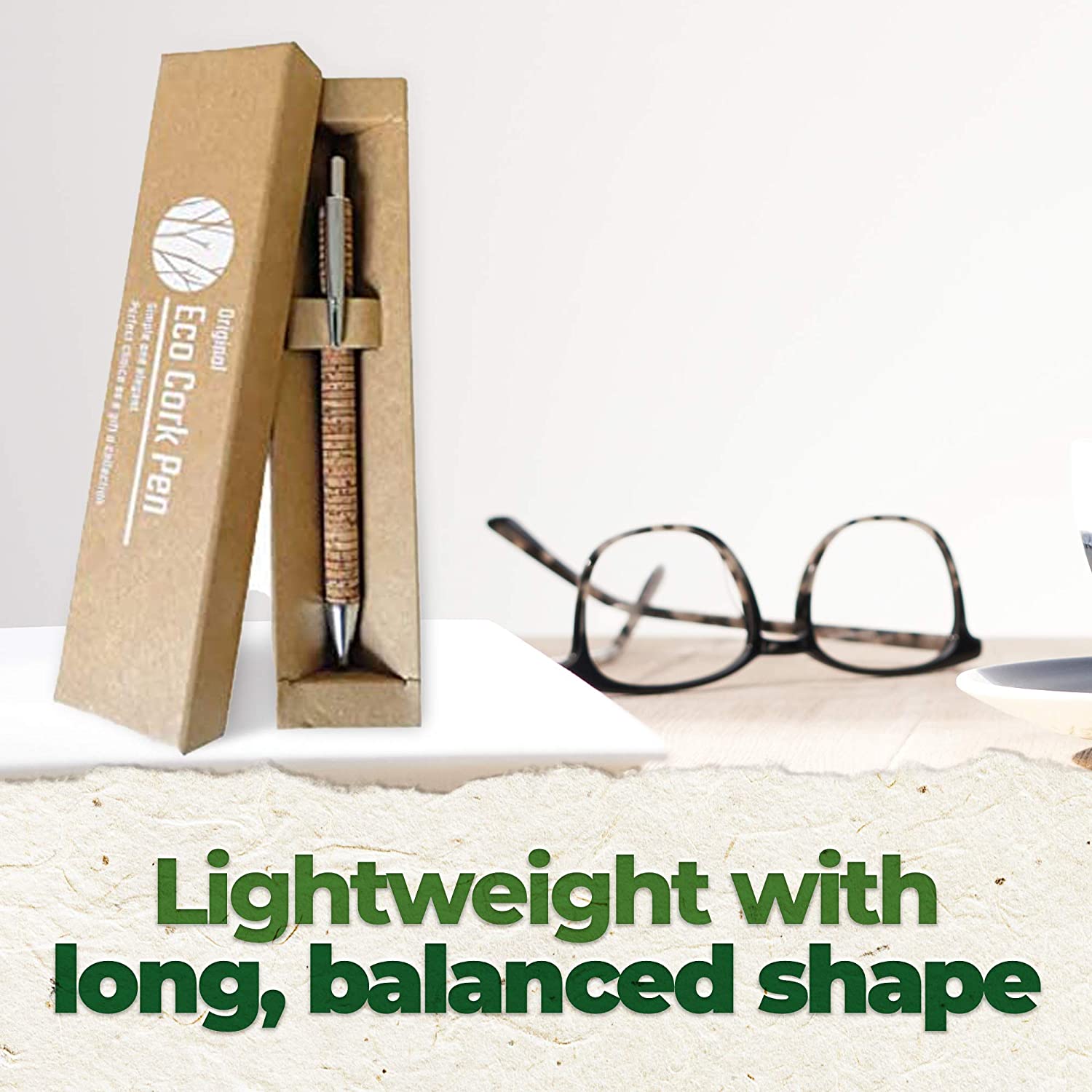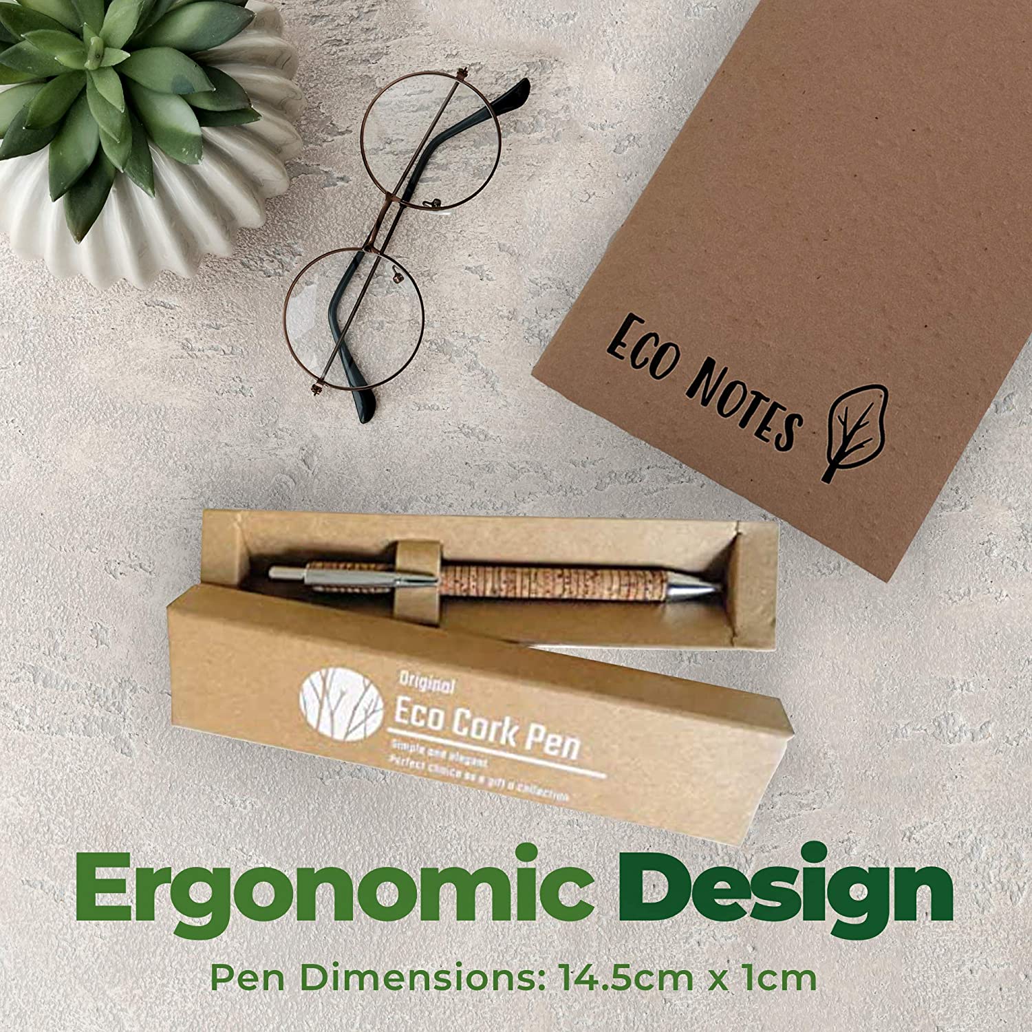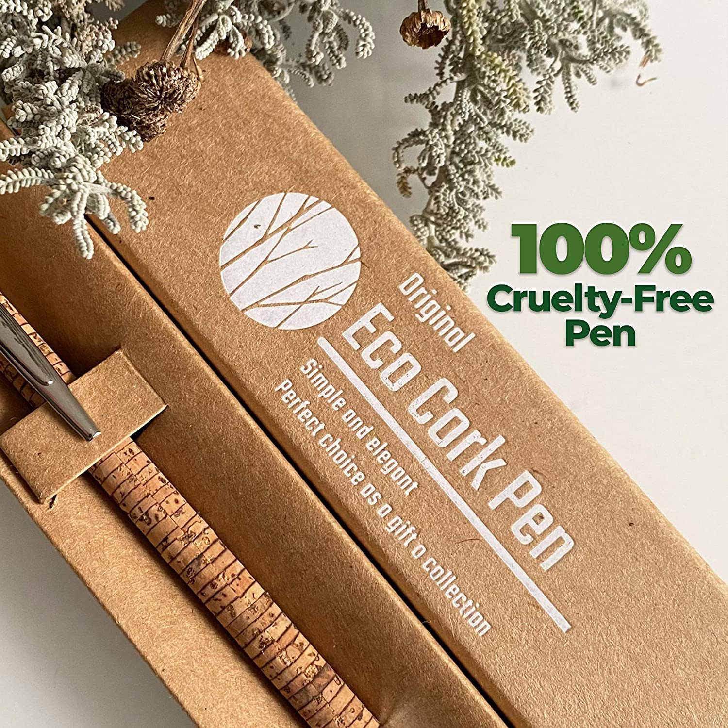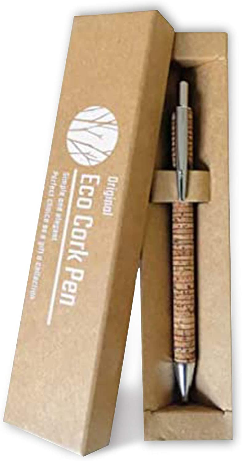 CURA PER L'AMBIENTE! La penna Ecolife Vegan Cork è realizzata in sughero ecologico, un tipo di legno rinnovabile ed ecosostenibile. Le punte della penna sono realizzate in alluminio di alta qualità e combinate con il sughero resistente offre una penna economica e durevole. Design ergonomico. Il design elegante della penna a sfera in sughero ECOLIFE consente una facile scrittura. Leggero con una forma lunga ed equilibrata, favorisce una scrittura confortevole. Per casa o ufficio. Questa penna a sfera è perfetta sia per ufficio che per uso domestico e arriva in un elegante sacchetto di cartone riciclabile. Ricarica facile: questa penna a sfera con inchiostro nero/blu è facilmente ricaricabile grazie al meccanismo di rotazione estremamente ingegneristico. La penna viene fornita con 1 ricarica supplementare, controllare sotto la penna. Promuovi il tuo business: perfetto per fiere, riunioni, eventi, clienti apprezzati e i tuoi dipendenti per dimostrare la tua etica ecologica. 100% vegano