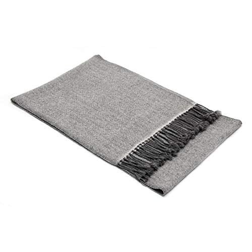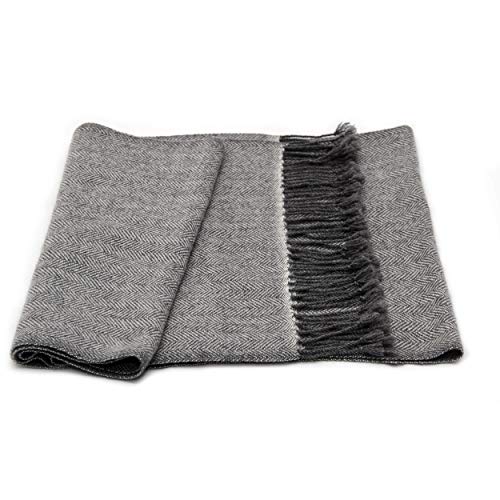 100% sciarpa in cachemire con nappa leggera, 26/2 Composizione filati mongoli, motivo a spina di pesce, grigio © Moksha Cashmere