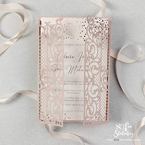 50 INVITI Apribile taglio laser inviti matrimonio fai da te partecipazioni matrimonio rosa carta con busta