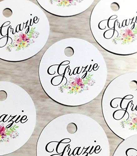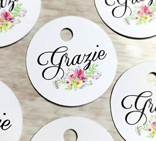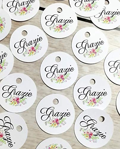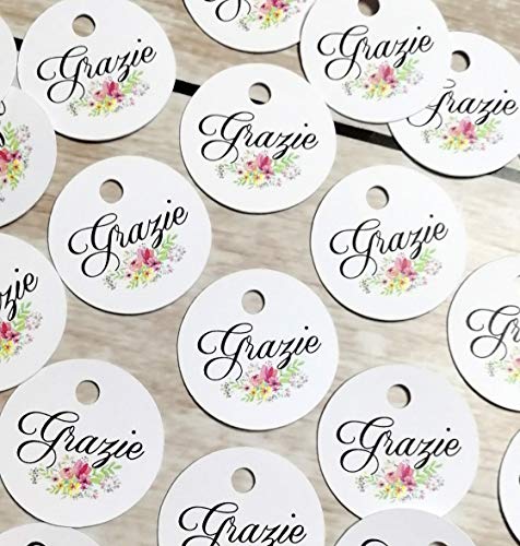 50 pezzi Cartellini Stampati per bomboniera, 3 centimetri, Grazie, tondo, etichette, nascita, battesimo, matrimonio, nozze, cresima, comunione, bigliettino, compleanno, confettata, grazie watercolor