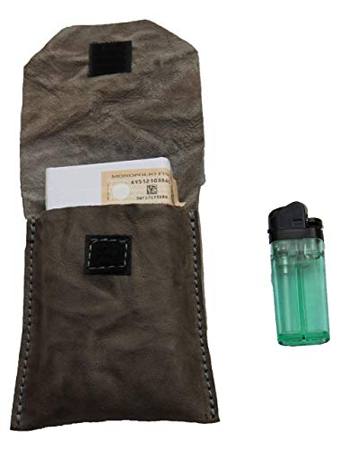 Astuccio porta sigarette custodia in vera pelle pregiata e riciclata effetto vintage col. Grigio
