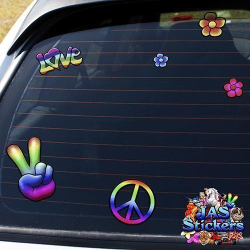 Piccolo confezione contiene dimensioni immagine: Mano - 10,5 x 6,5 cm (2,6 "x4,1"), Segno di pace - 7,5 x 7,5 cm, Amore - 7,5 x 4 cm (3 "x1,6") e 3 Fiori - 3 x 3 cm (1.4 x 1.4 ") Pack contiene 6 adesivi. JAS Stickers presenta la nostra gamma popolare di adesivi / decalcomanie adesivi australiani di alta qualità, adatti per auto, motociclette, barche, jet ski, caravan ecc. Visitate il nostro negozio per vedere altri prodotti. PER VEDERE LA NOSTRA GAMMA COMPLETA DI RICERCA DI AFFARI - JANTKE ART STUDIO