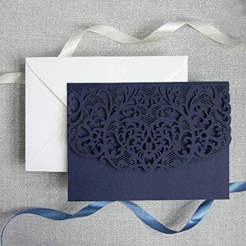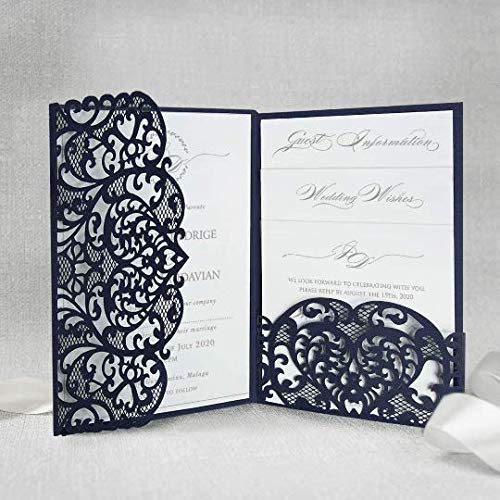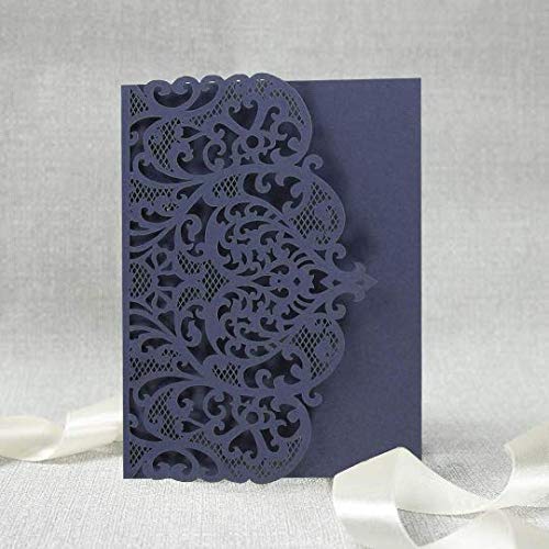 Blu marino apribile taglio laser inviti matrimonio fai da te partecipazioni matrimonio carta con busta campione con un esempio di stampa !!