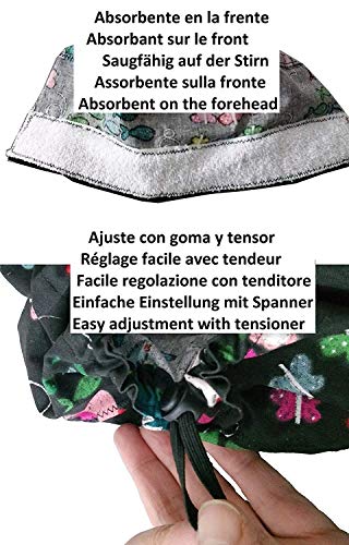 cappello chirurgico donna Slate Per capelli lunghi Con striscia assorbente sulla fronte. Regolabile con tenditore e gomma