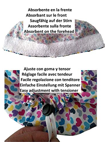 Cappello medico quirofano Cuori Per i capelli lunghi Infermieristica, dentista, veterinaria, cucina, industria. Asciugamano sulla fronte Facile regolazione con tenditore