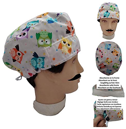 Cappello sala operatoria Gufi capelli corti Chirurgo Dentista Vet Cook Asciugamano assorbente sulla fronte Regolabile a proprio piacimento con tenditore