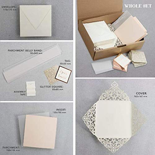 Inviti alla preparazione manuale.Crea il tuo invito e lo fai tornare a casa in compagnia di amici.Vuole essere un'attività divertente e manuale.Preparerai un invito per un compleanno, matrimonio, anniversario, baby shower, comunione, battesimo, baby shower.Da stamparecampione con un esempio di stampa !!Gli inserti sono vuoti in modo da poterli riempire con i tuoi messaggi o foto personali.Gli inserti sono stampabili e stampabili.Questo ti aiuta a impostare le dimensioni giuste per te o per le stampanti.Migliaia di coppie usano le nostre formulazioni campione senza problemi.Per preparare da soli i tuoi inviti, abbiamo file PDF modificabili con esempi di inviti (Layout del testo e caratteri) preparati.Puoi inserire il tuo testo e stampare tu stesso l'inserto.Scrivi nel messaggio quale modello desideri ricevere.Si consiglia di stampare su un singolo inserto a scopo di prova.Se desideri acquistare un campione, ti prego di inviarmi un messaggio.Contenuto: copertina, inserto, nastro, busta, quadrato glitterato e cinturino in pergamena fine, nastro biadesivo per l'autoassemblaggioDimensione dell'invito: 162 x 162 mmCopertina: crema chiara opacaDimensione dell'inserto: 155 x 155 mmInserto: Bordo del gelato2 Inserto: pergamenaInserti vuotiCinturino: pergamena, largo 50 mmDimensione del glitter: 85x85mmQuadrato glitterato: oroTag "You're invited" dimensioni: 75x75mmTag "You're invited": crema chiara opaca con foglia oro rosaBusta: bianca 170 x 170 mmTecniche: taglio laser, nastro, lavorazione