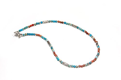 Collana in perline regalite naturale azzurro et arancione con metallo stile tibetano per uomo e donna. Dimensioni: 19 "(~ 48,5 cm) sulla foto. Fatto a mano solo con nuovi materiali. (Modello: 185cm/72kg).