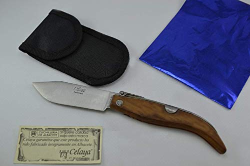 Coltello Celaya classico Albacete Pastora, con manico di Legno d'ulivo. Lama in acciaio al carbonio. Sistema di chiusura Palanquilla. SCHEDA TECNICA Lunghezza della lama:8 cm Acciaio al carbonio. Peso: 50 gr. Spessore della foglia: 2,25 mm. Lunghezza aperta: 18,50 cm. Questo coltello ha il certificato di qualità AB che garantisce che è interamente realizzato in Albacete. Assicurati che le dimensioni del coltello siano disponibili anche in fogli di 7, 10 e 11 cm. Essere un articolo realizzato con materiale naturale può variare leggermente dall'immagine. Custodia e busta per la confezione regalo incluse.