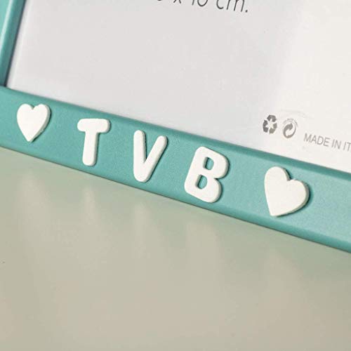 Cornici per foto in legno con la scritta Nonno TVB. Misura interna per la foto 13 x 18 cm e si può usare per fotografie di misura inferiore e le dimensioni esterne della cornice è di 21 X 16 cm. Cornice di colore Celeste. Le lettere sono di colore Bianco e fatti in materiale di gomma crepla (foam) incollati sulla cornice in forma ondulata e con piccole decorazione a forma di cuore dello stesso materiale. Posizione in orizzontale. Si può appoggiare o appendere. Ideale come ricordo per trasmettere un bel messaggio.