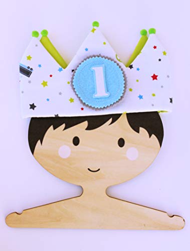 Corona in tessuto per il primo compleanno di neonati e bambini, È una corona in tessuto di cotone con disegni di auto e stelle con applicazioni in feltro. E 'fatto a mano con grande cura e affetto. E 'perfetto per un regalo di compleanno, decorazione di compleanno dei bambini, decorazione di festa. I numeri sono adesivi e modificabili, viene fornito con numeri da 1 a 5.