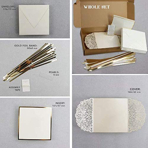 Inviti alla preparazione manuale.Crea il tuo invito e lo fai tornare a casa in compagnia di amici.Vuole essere un'attività divertente e manuale.Preparerai un invito per un compleanno, matrimonio, anniversario, baby shower, comunione, battesimo, baby shower.Da stamparecampione con un esempio di stampa !!Gli inserti sono vuoti in modo da poterli riempire con i tuoi messaggi o foto personali.Gli inserti sono stampabili e stampabili.Questo ti aiuta a impostare le dimensioni giuste per te o per le stampanti.Migliaia di coppie usano le nostre formulazioni campione senza problemi.Per preparare da soli i tuoi inviti, abbiamo file PDF modificabili con esempi di inviti (Layout del testo e caratteri) preparati.Puoi inserire il tuo testo e stampare tu stesso l'inserto.Scrivi nel messaggio quale modello desideri ricevere.Si consiglia di stampare su un singolo inserto a scopo di prova.Se desideri acquistare un campione, ti prego di inviarmi un messaggio.Contenuto: copertina, inserto, nastro biadesivo, perla, bustaDimensione dell'invito: 162 x 162 mmCopertina: Crema chiara opacaDimensione dell'inserto: 157 x 157 mmInserto: Crema leggera con cornice in foglia d'oroInserisci uno spazioCinturino: bianca opaca con foglia d'oro su un lato, larghezza 12 mmPerla: 5mm, mezza perla, autoadesiva, colore biancoBusta: biancaTecniche: taglio laser, nastro, lavorazione