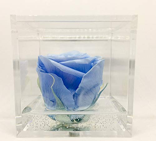 Cubo Rosa stabilizzata azzurra 8cm, profumata è una vera e propria Rosa che dura anche piu di 5 anni