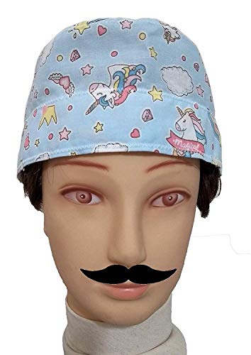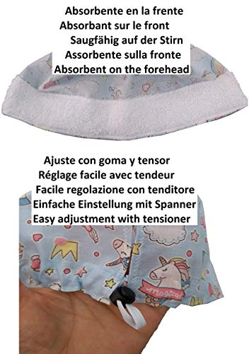 Cuffietta chirurgica Unicorns per capelli corti, chirurgo, dentista, veterinario, Asciugamano da cucina sulla fronte, regolabile con tenditore e gomma